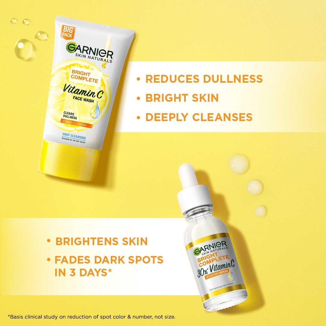 • VISIBLE RESULTS: Garnier Bright Complete Facewash Vitamin C Serum, Including this vitamin C skincare combo into your regular skincare routine will help to achieve faster and more visible results effortlessly
